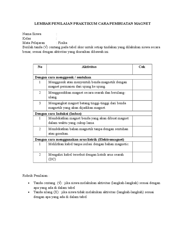 Lembar Penilaian Praktikum Pdf
